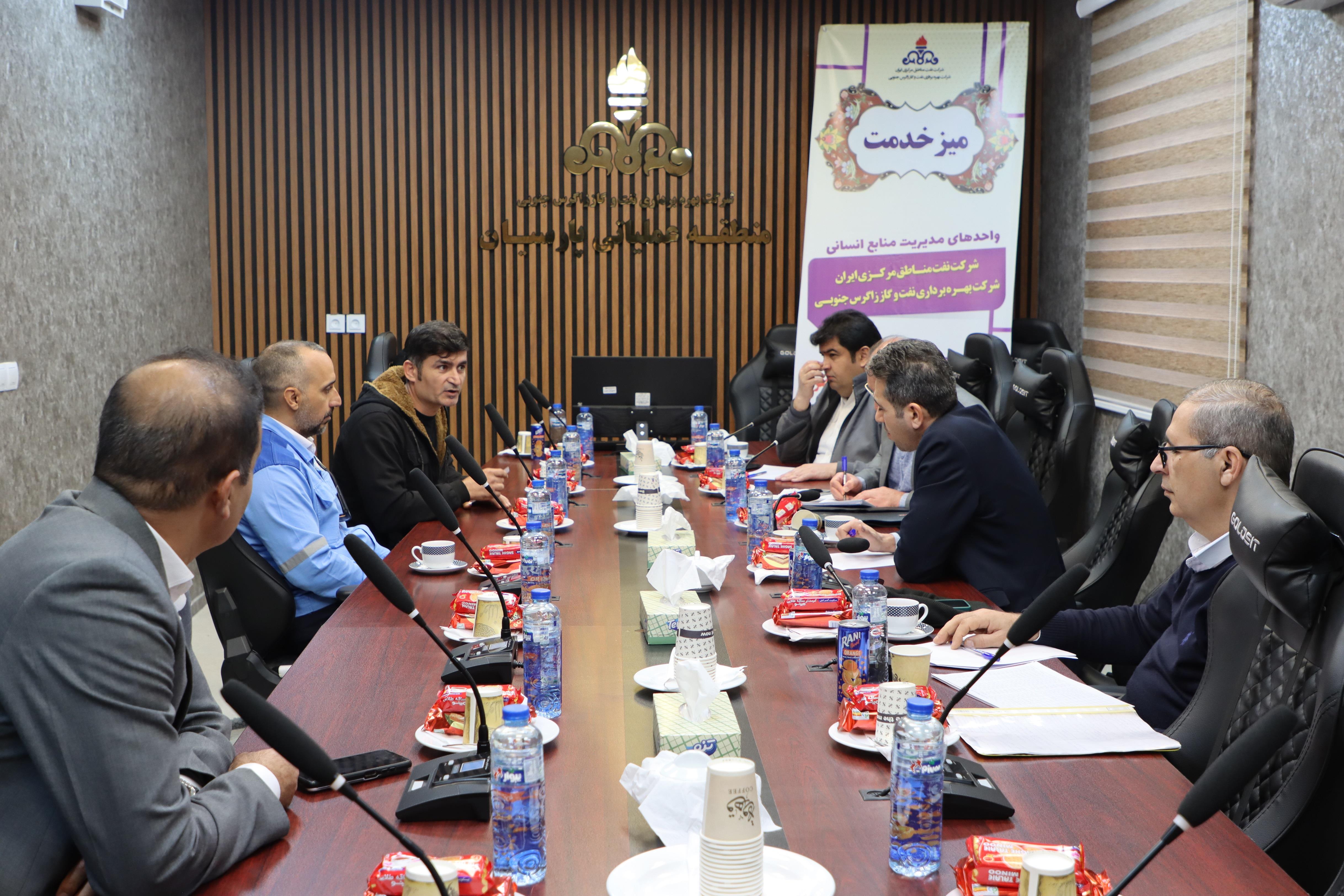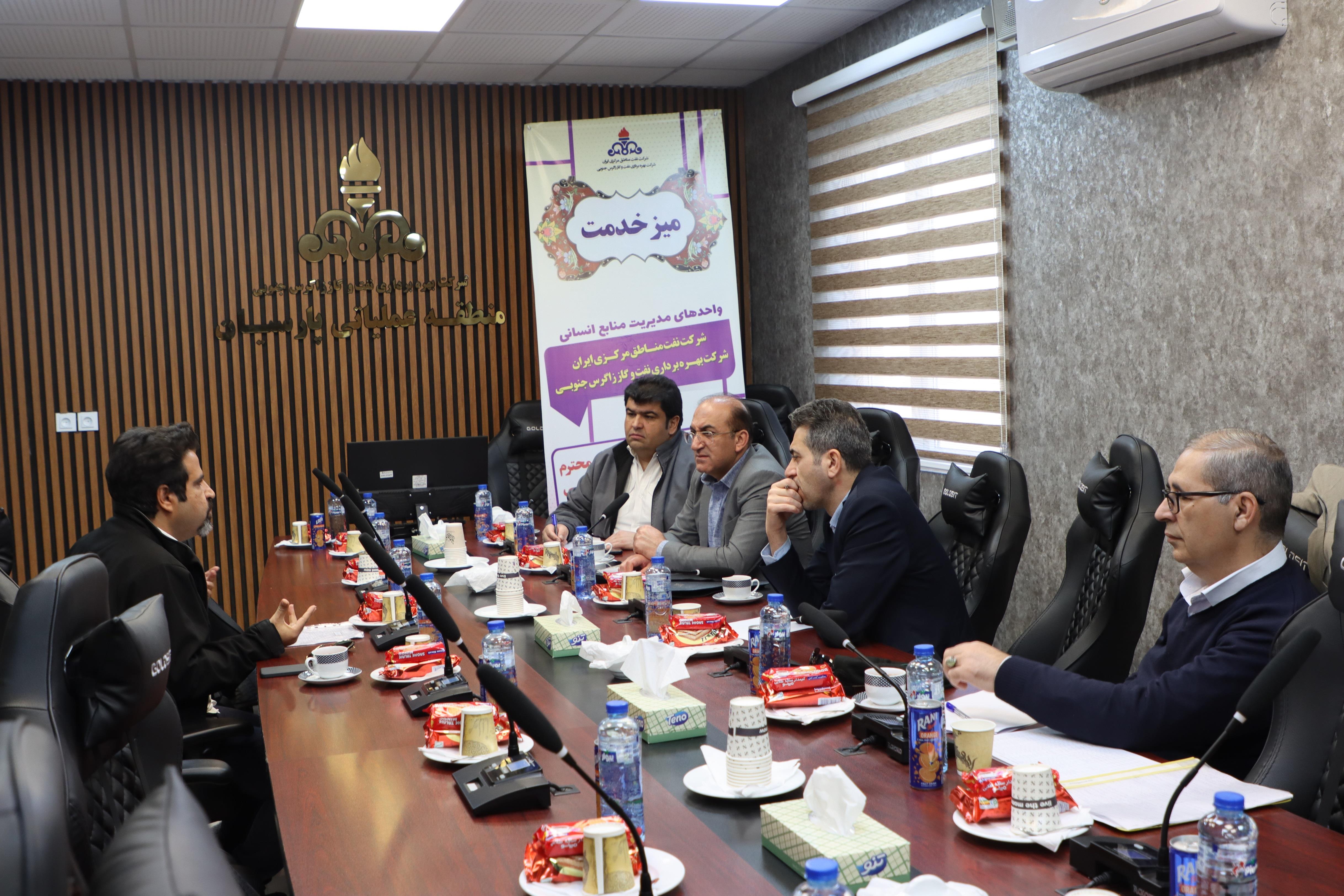 نشست صمیمانه مدیریت منابع انسانی شرکت های نفت مناطق مرکزی ایران و بهرهبرداری نفت و گاز زاگرس جنوبی با کارکنان مناطق عملیاتی نار و کنگان و پارسیان در راستای بررسی،پایش و حل و فصل مسائل و مشکلات ایشان برگزار گردید.