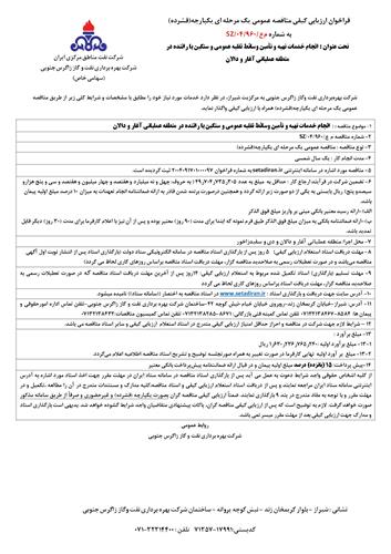 انجام خدمات تهیه و تأمین وسائط نقلیه عمومی و سنگین با راننده در منطقه عملیاتی آغار و دالان نوع مناقصه شماره 960 سازمان مرکزی شرکت بهره برداری نفت و گاز زاگرس جنوبی سازمان برگزار کننده شرکت بهره برداری نفت و گاز زاگرس جنوبی نوع برگزاری موضوع حوزه فعالیت توضیح مختصر قیمت پیوست 0 تومان وضعیت انقضا اطلاعات تکمیلی واحدپولی برآورد مالی ریال محدوده داخلی وضعیت برگزاری عادی اطلاعات اسناد محل دریافت اسناد استان: فارس, شهر: شیراز تلفن تماس اداره امورحقوقی و پیمان ها: 8584-07132138467 تلفن تماس کمیته فنی بازرگانی: 8671-07132138285 تلفن تماس کمیسیون مناقصات:07132138432 اطلاعات پیوست