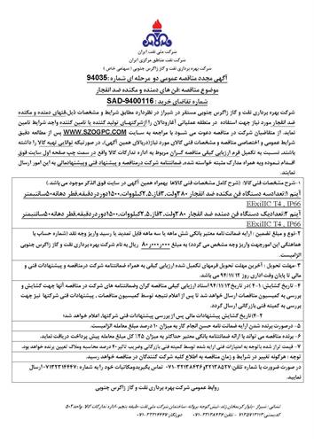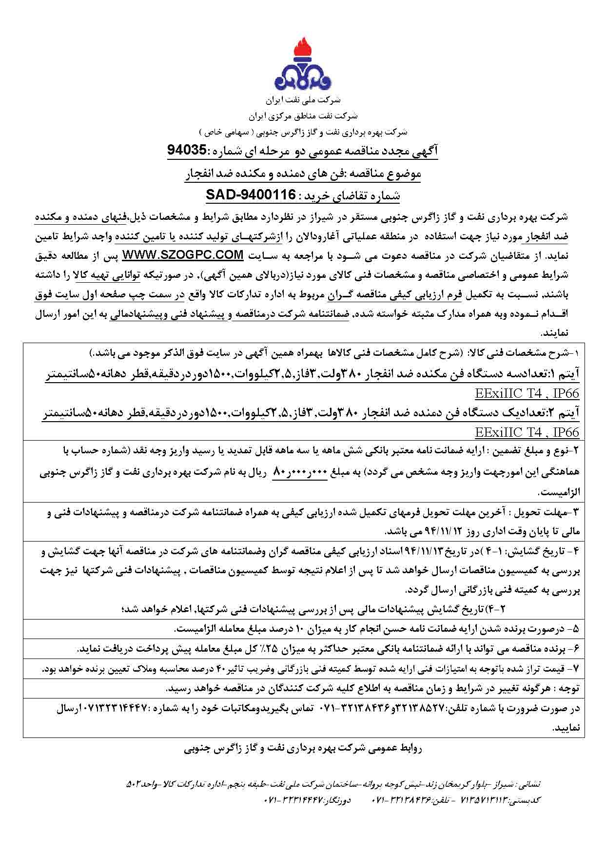 تقاضای خرید فنهای دمنده و مکنده ضد انفجار مورد نیاز جهت استفاده در منطقه عملیاتی آغار و دالان
