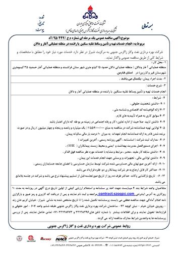 مربوط به : انجام خدمات تهیه و تأمین وسائط نقلیه سنگین با راننده در منطقه عملیاتی آغار و دالان نوع مناقصه شماره م ع/442/95/آد سازمان مرکزی شرکت بهره برداری نفت و گاز زاگرس جنوبی سازمان برگزار کننده شرکت بهره برداری نفت و گاز زاگرس جنوبی نوع برگزاری موضوع حوزه فعالیت توضیح مختصر قیمت پیوست 0 تومان وضعیت انقضا اطلاعات تکمیلی واحدپولی برآورد مالی ریال محدوده داخلی وضعیت برگزاری عادی اطلاعات اسناد مهلت دریافت سند ۳۰ خرداد ۱۳۹۵ ۰۷:۳۸ محل دریافت اسناد استان: فارس, شهر: شیراز متقاضیان واجد شرایط بند 4 میبایست جهت اخذ پر سشنامه و استعلام ارزیابی کیفی از اولین تاریخ درج آگهی در روزنامه به مدت 10 روزکاری به آدرس اینترنتی contract.szogpc.com مراجعه و ثبت نام نمایند و پس از دریافت کد کاربری و رمز عبور و بارگزاری نامه اعلام آمادگی جهت مناقصه عطفی می بایست پرسشنامه تکمیل شده را تا تاریخ مشخص شده به نشانی شیراز- خیابان کریم خان زند – روبروی خیابان خیام – نبش کوچه 42 - ساختمان شرکت بهره برداری نفت وگاز زاگرس جنوبی طبقه ششم واحد 607 - امور حقوقی و قراردادها تحویل نمایند و برای اطلاعات بیشتر با شماره تلفن های32138396 و 32138473-071 تماس حاصل نمایند. پس از بررسی پرسشنامه ها به واجدین شرایط مدارک مناقصه ارائه می گردد . اطلاعات پیوست